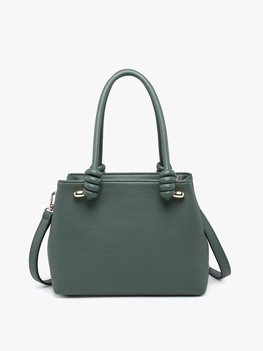 The Blair Classic Satchel is a timeless accessory made from premium vegan leather, featuring dual knotted handles for a sophisticated touch. With a top zip closure and additional top hook closure, this satchel ensures secure storage. It includes a back zip pocket for extra convenience, and the adjustable/removable crossbody strap offers versatile carrying options.