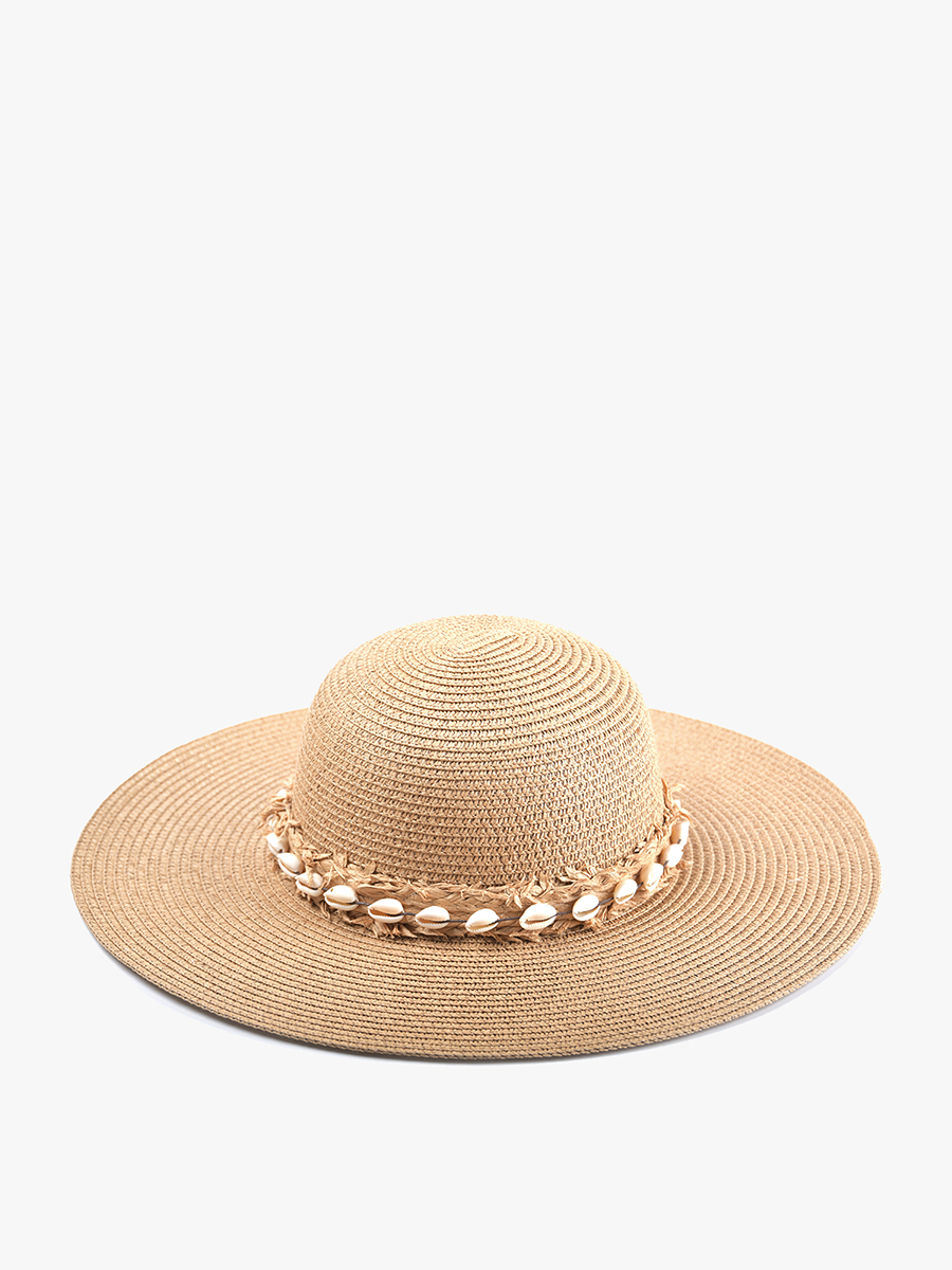• Seashell-accented band adds a coastal-inspired touch to the hat.