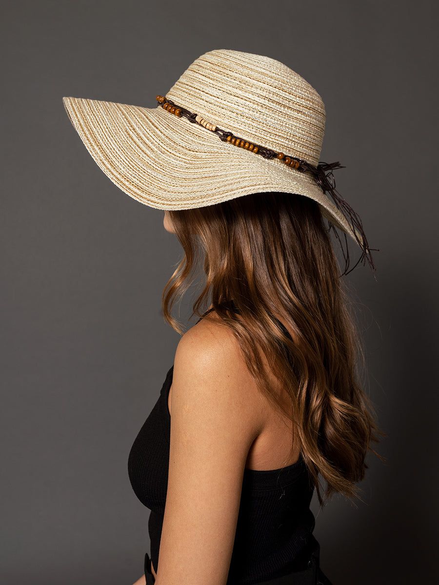 Pair Harlyn with your favorite summer dress, or use it to protect you from the sun! This floppy hat features a wide brim and a beaded band to keep you looking stylish. Made of cotton.