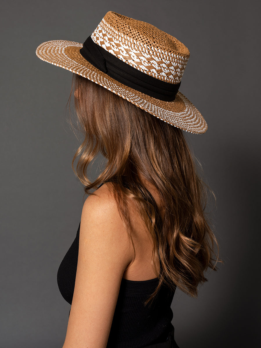 Make a statement at your next summer event with Zia, a fun and fashionable boater hat designed to elevate your ensemble with effortless style. Crafted from high-quality paper straw, Zia features a two-tone color style and a contrasting band, adding a touch of charm to any outfit.