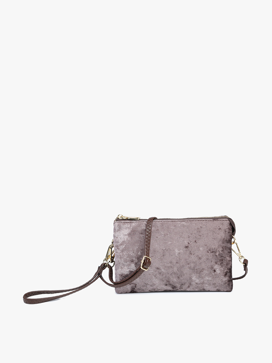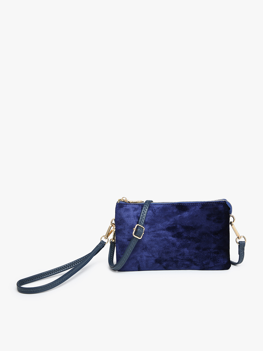 Meet the Riley bag, a coveted favorite and one of our top sellers! This luxurious velvet crossbody/clutch is designed to elevate your style with its impeccable functionality and chic design. Featuring two major compartments, including a convenient middle zipper pocket, and secured with a top zipper closure, Riley offers ample space to keep your essentials organized. Inside, you'll find two slip pockets and six cardholders, providing easy access to your belongings on the go. Whether you prefer to wear it as a crossbody for hands-free convenience or carry it as a clutch for a sophisticated look, Riley adapts to your style effortlessly. The bag comes complete with a detachable wristlet strap and an adjustable shoulder strap, offering versatile carrying options to suit your needs. Crafted from luxurious velvet material, Riley exudes opulence and style. With dimensions measuring 9"L x 1.5"D x 5"H, it strikes the perfect balance between compactness and utility.