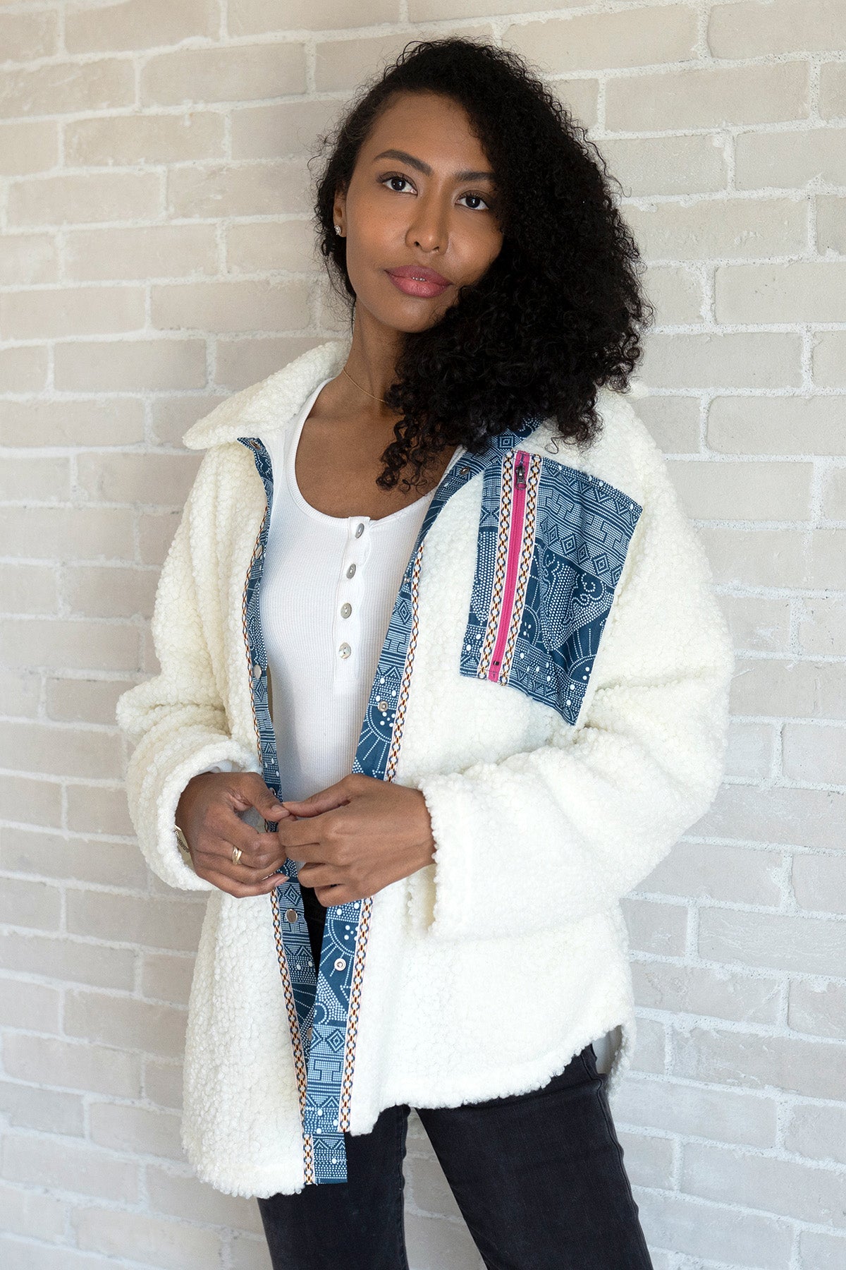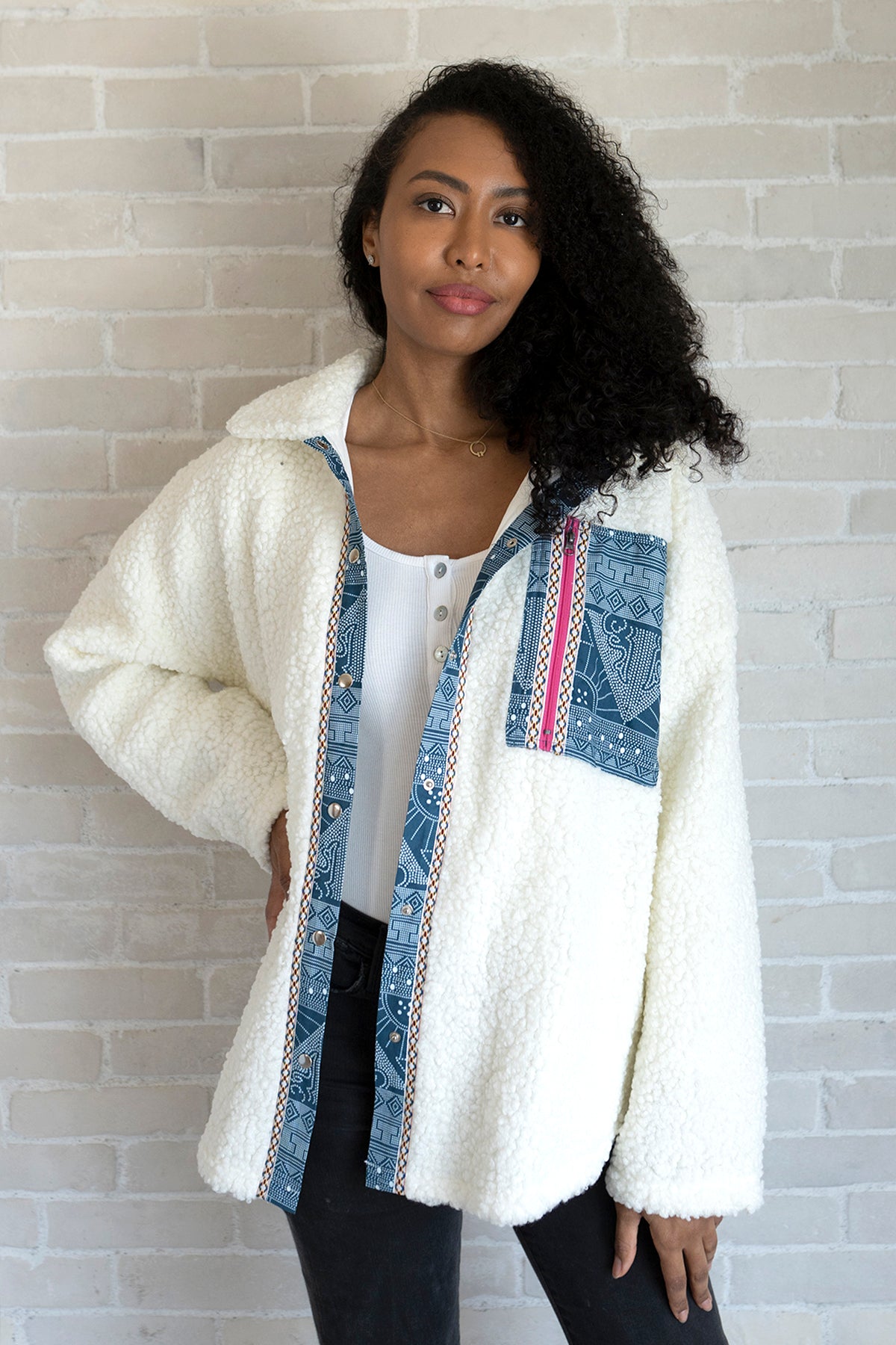 The Murphy Sherpa Jacket delivers cozy warmth and effortless style with its soft knit sherpa fabric and printed woven contrast trim. Designed for comfort and function, it features a snap front closure, zippered welt pocket, and durable 100% polyester construction.
