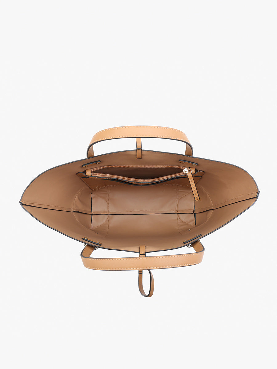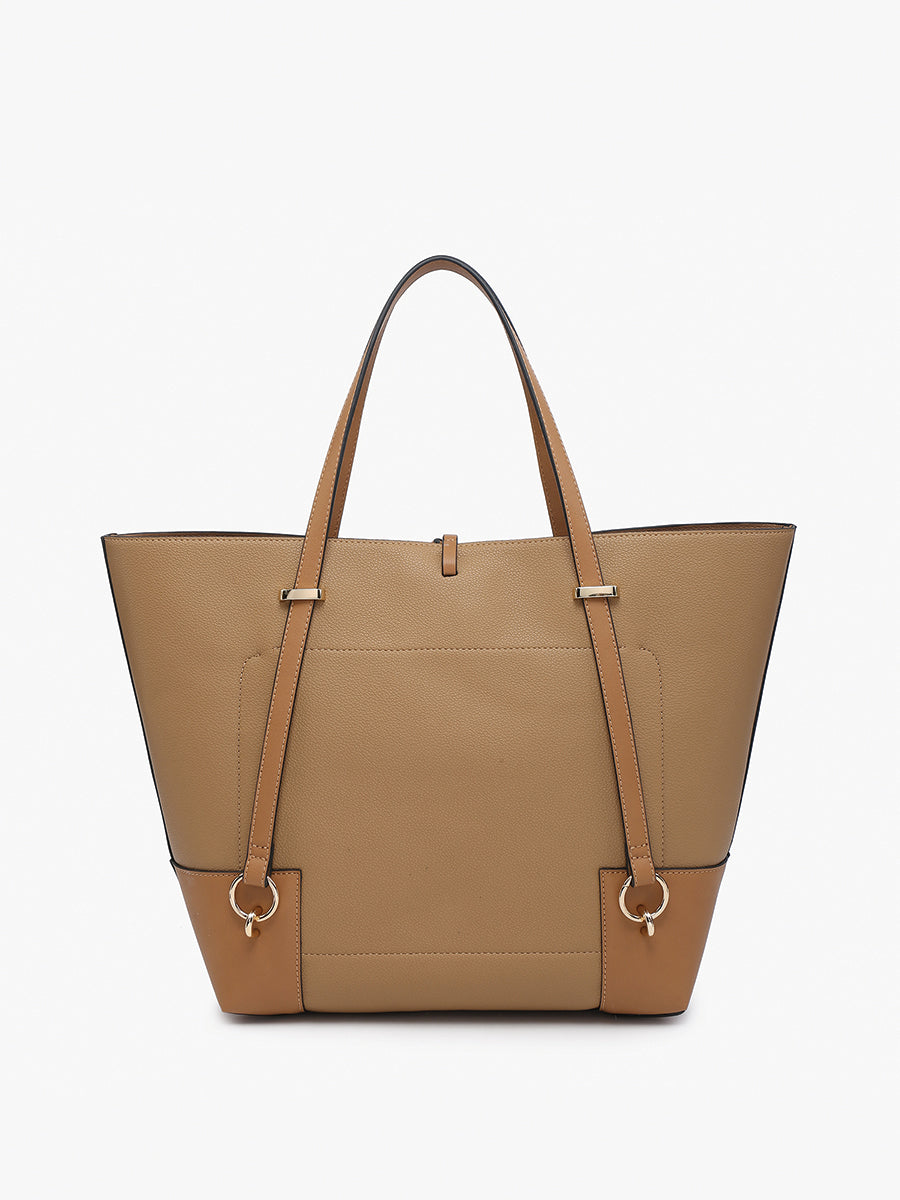 • Flapover Accent Hardware: Enhances the tote's visual appeal.