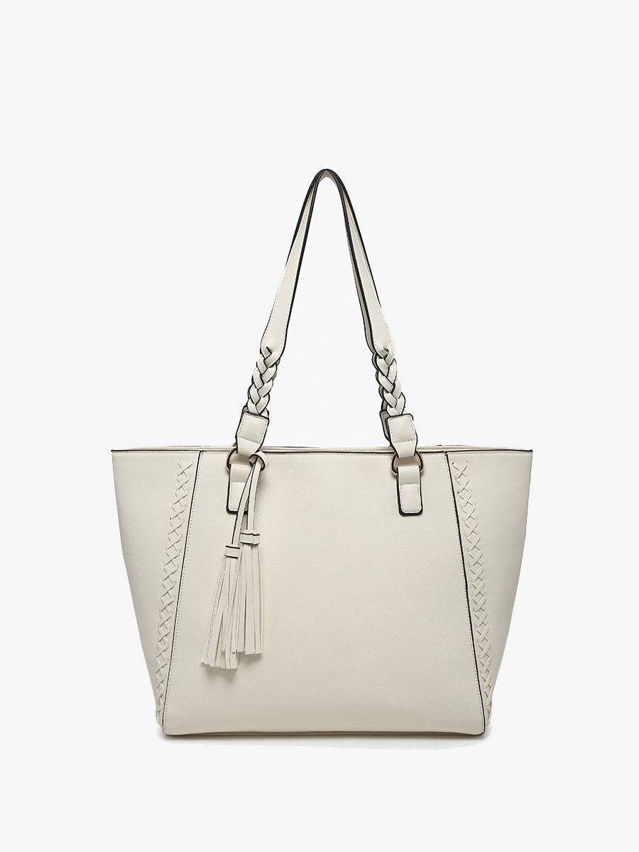 Introducing Lisa, your go-to accessory that exudes style and functionality. With her distinctive braided handles and charming tassels, Lisa is designed to make a statement while offering practical features that elevate your everyday look.