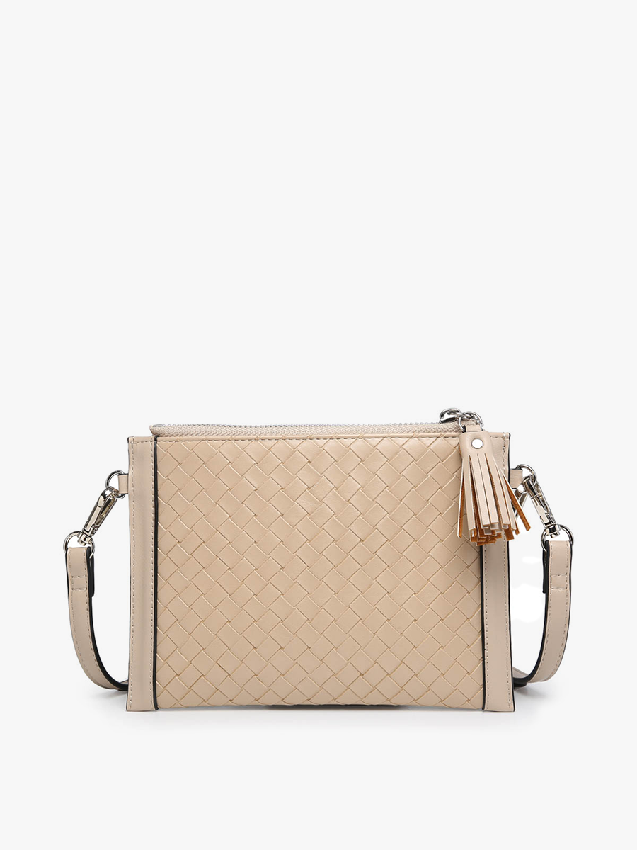Meet Mirabel, the versatile bag full of options! Crafted with a distinctive weave-textured design, Mirabel offers functionality and style in one chic package. This bag comes with multiple coin pouches that can be easily removed or attached anywhere you desire, allowing for customizable organization. Mirabel features two zippered compartments adorned with fringe tassels, convenient inside cardholders, a practical wristlet strap, and an adjustable/detachable crossbody strap for versatile carrying options. Made of durable vegan leather, Mirabel is as sustainable as it is fashionable. Dimensions: 7.5"L x 5.5"H x 1"D.