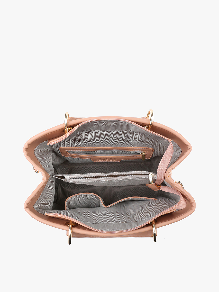 Introducing the Nancy Diamond Woven Tote, a stylish and versatile accessory that effortlessly combines fashion and function. This tote bag features a beautifully woven design with striking stripes, adding texture and visual appeal to your ensemble. With dual handles for easy carrying, the Nancy tote offers convenient storage options with a top zip closure to secure your belongings and a back zip pocket for quick-access items. Plus, the adjustable and removable crossbody strap provides customizable wear, allowing you to switch between carrying styles with ease.