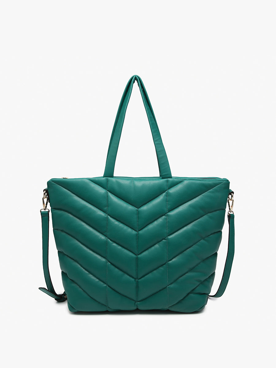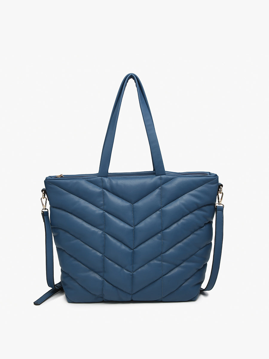 The Brinley Quilted Chevron Tote with Shoulder Strap offers both style and functionality, making it a chic choice for those who need a spacious bag for everyday use or travel.