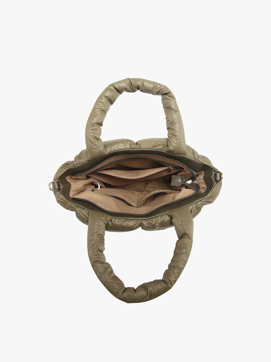 Meet Brittany, the epitome of bubbly charm and beauty. This pint-sized puffer tote is a delightful blend of style and spaciousness. With its adjustable strap, Brittany is ready to accompany you on all your adventures, whether big or small.
