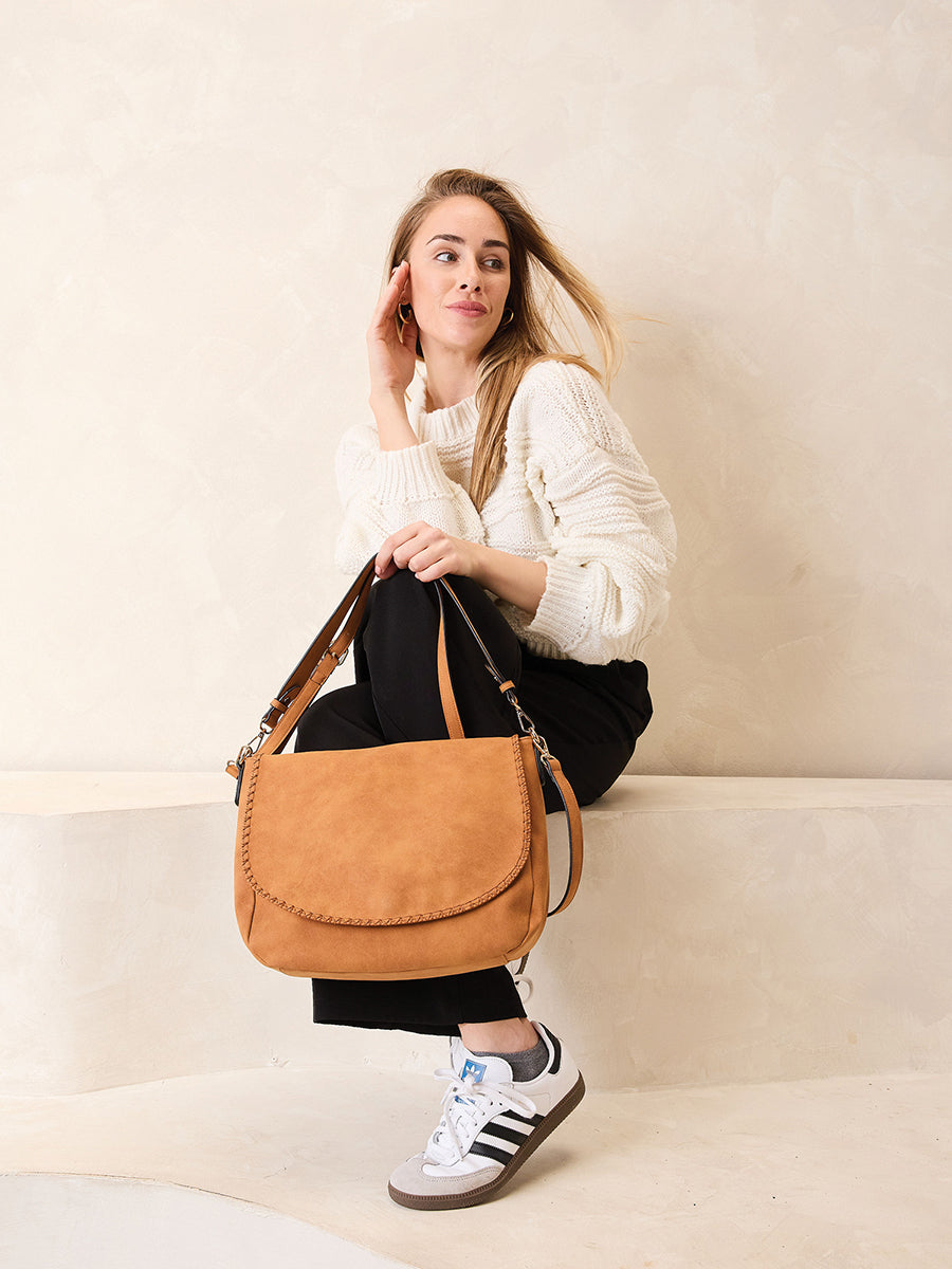 Whipstitch Flapover: Adds a stylish and unique touch to the satchel.