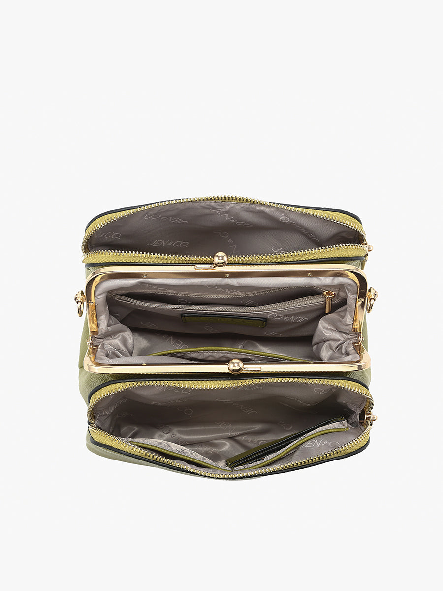 • Kiss Lock Closure: A vintage-style clasp for the main compartment.