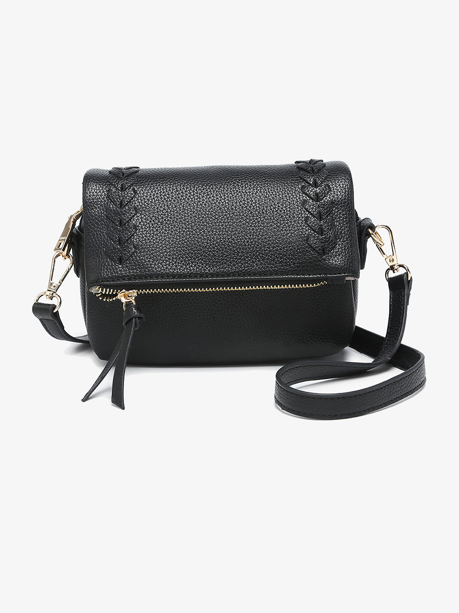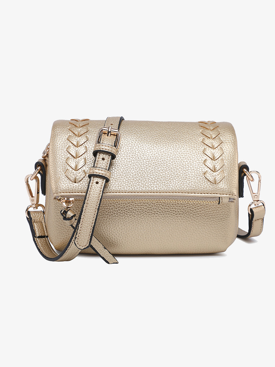 A compact, detailed crossbody perfect for everyday organization with a touch of texture.