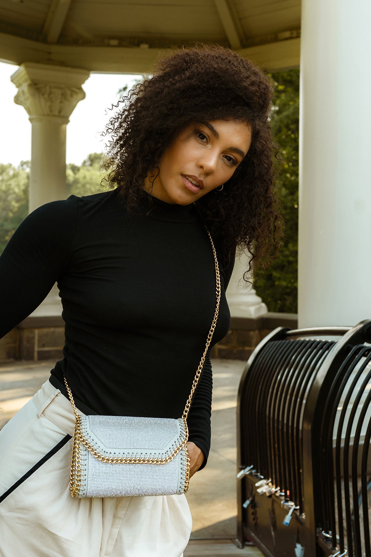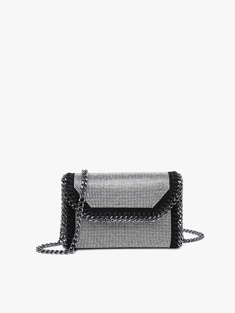 Meet Colette, the perfect sidekick for your night out! This elegant clutch/crossbody is designed to add glamour to your ensemble with its rhinestone design and chain detail. Featuring inner card slots, a small pocket, and a magnetic closure, Colette offers both style and functionality in one sleek package.