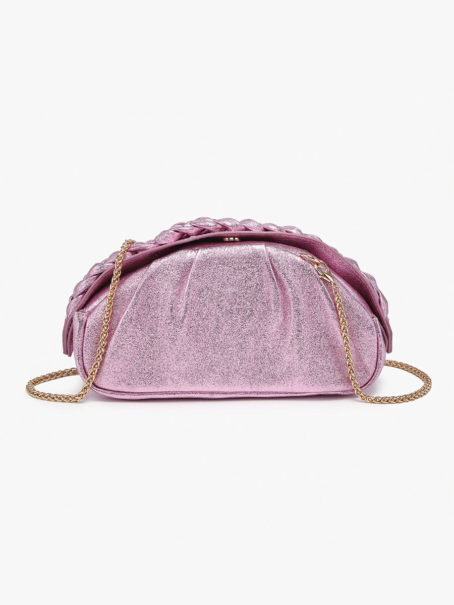 The Madrigal Metallic Clutch offers a blend of style and versatility. Featuring a chic braided handle and secure snap closure, this clutch is perfect for making a statement. The removable chain strap provides the option to wear it as a crossbody or carry it as a clutch.