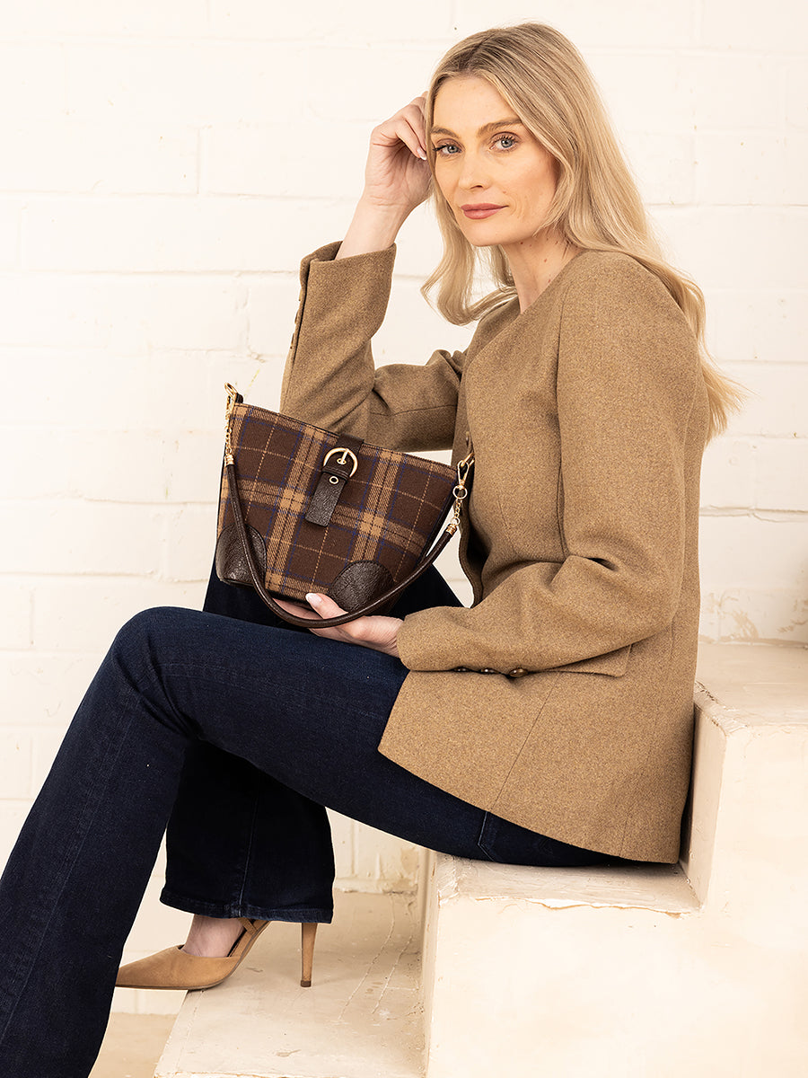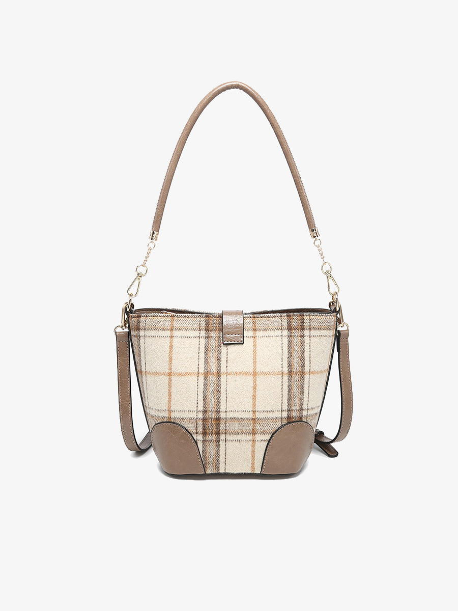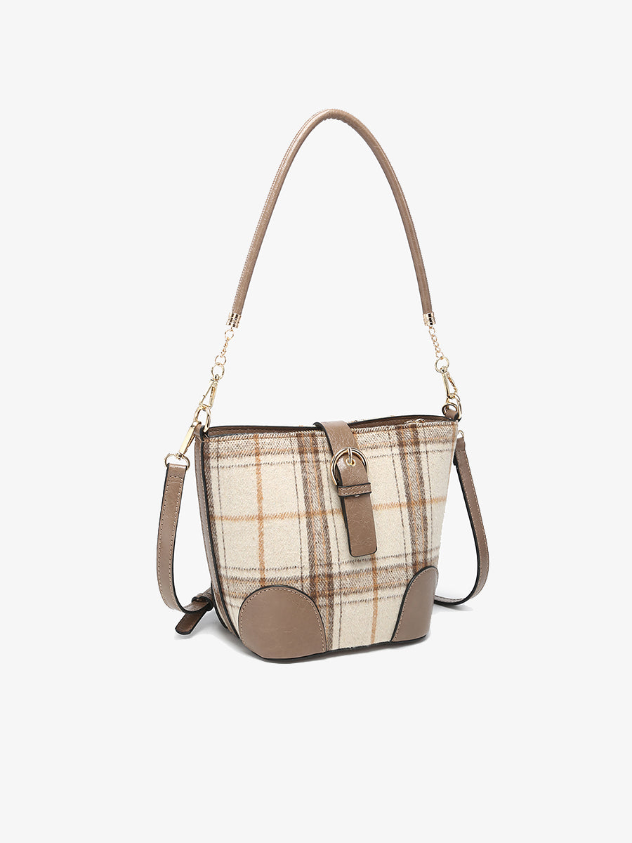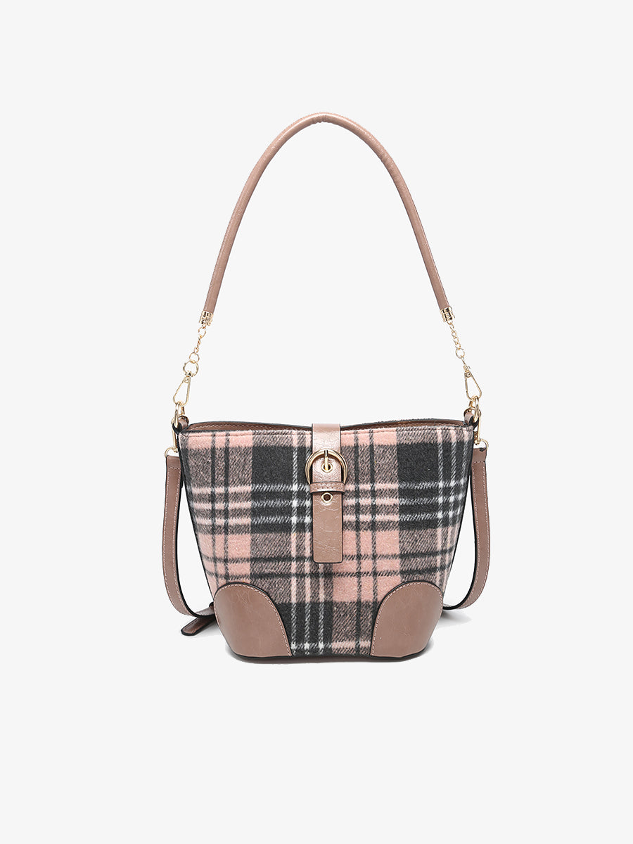 Chic and functional, the Georgina Plaid Bucket Bag adds a timeless pattern to your everyday look with versatile styling options.
