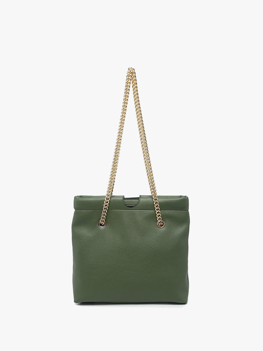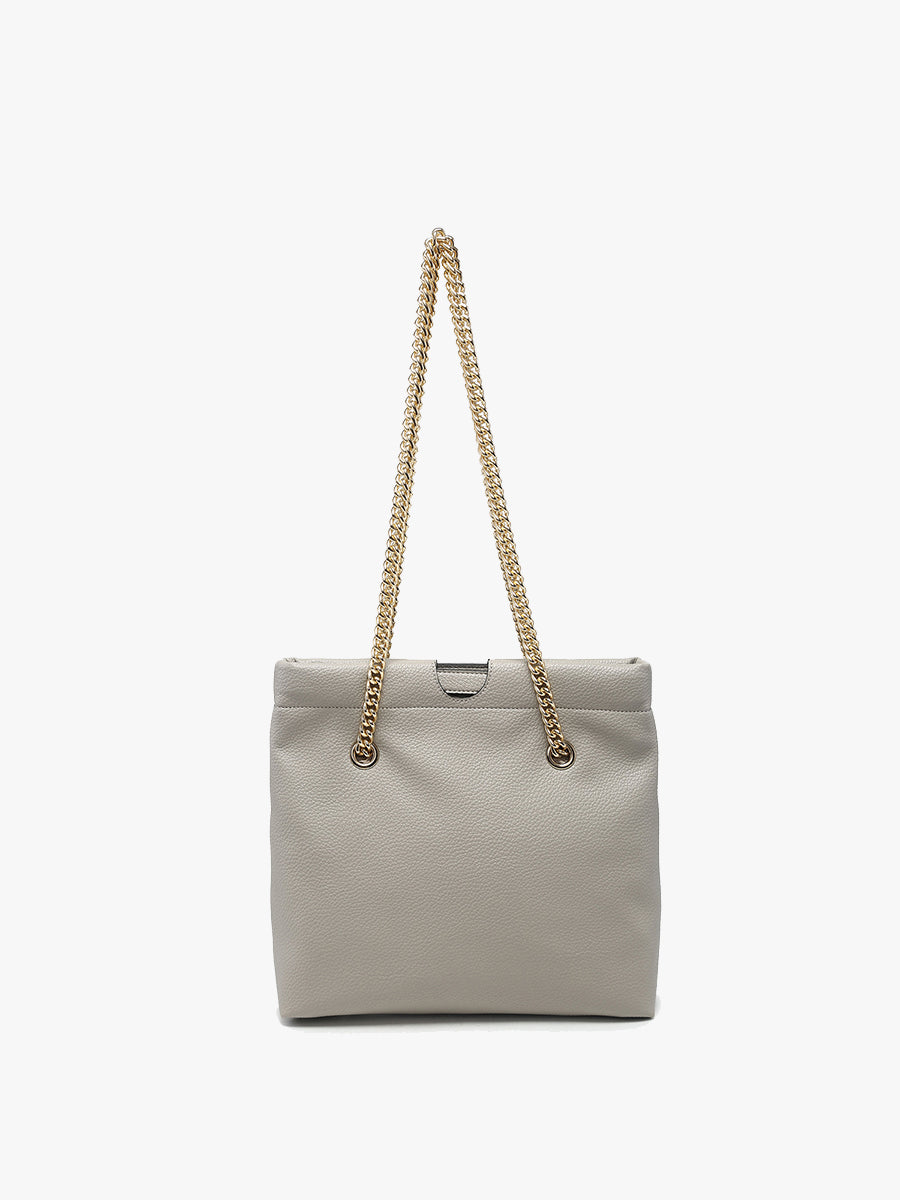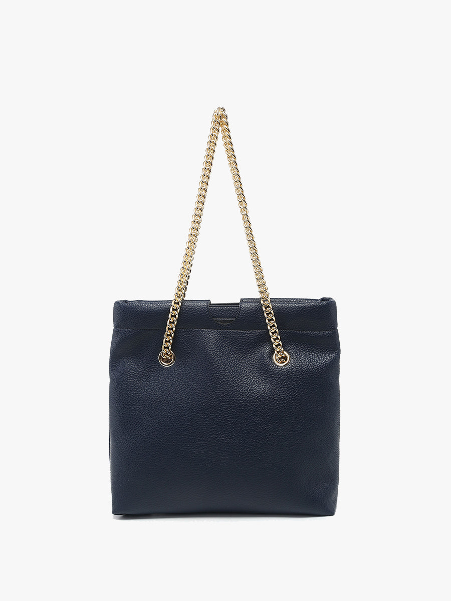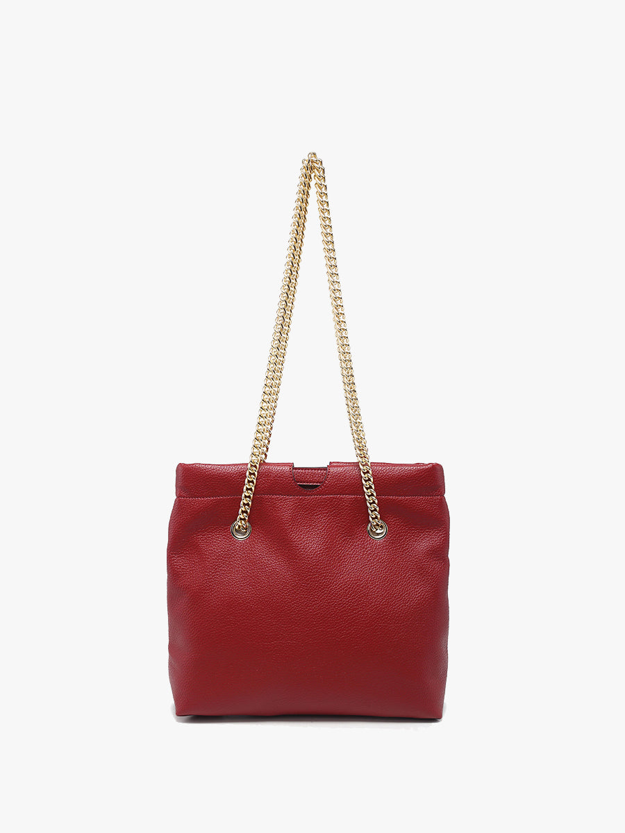 The Casey Cinched Satchel combines elegance with a modern twist, crafted from premium vegan leather. Its cinched design and luxurious gold chain strap make it a standout piece for any occasion. Featuring a secure snap hinge closure, this satchel is perfect for both day and evening wear, while the adjustable strap adds a touch of sophistication and versatility.