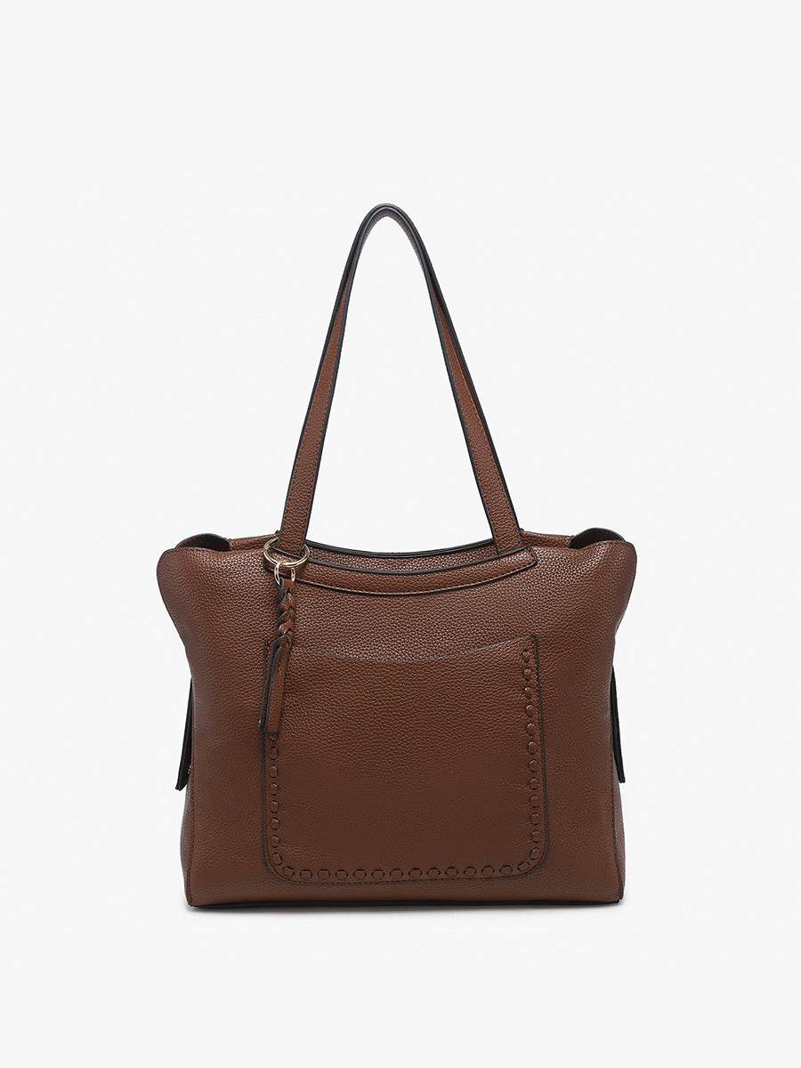Elevate your everyday style with the Hunter Pocket-Front Distressed Toteβ€”a perfect blend of practical design and chic aesthetics.