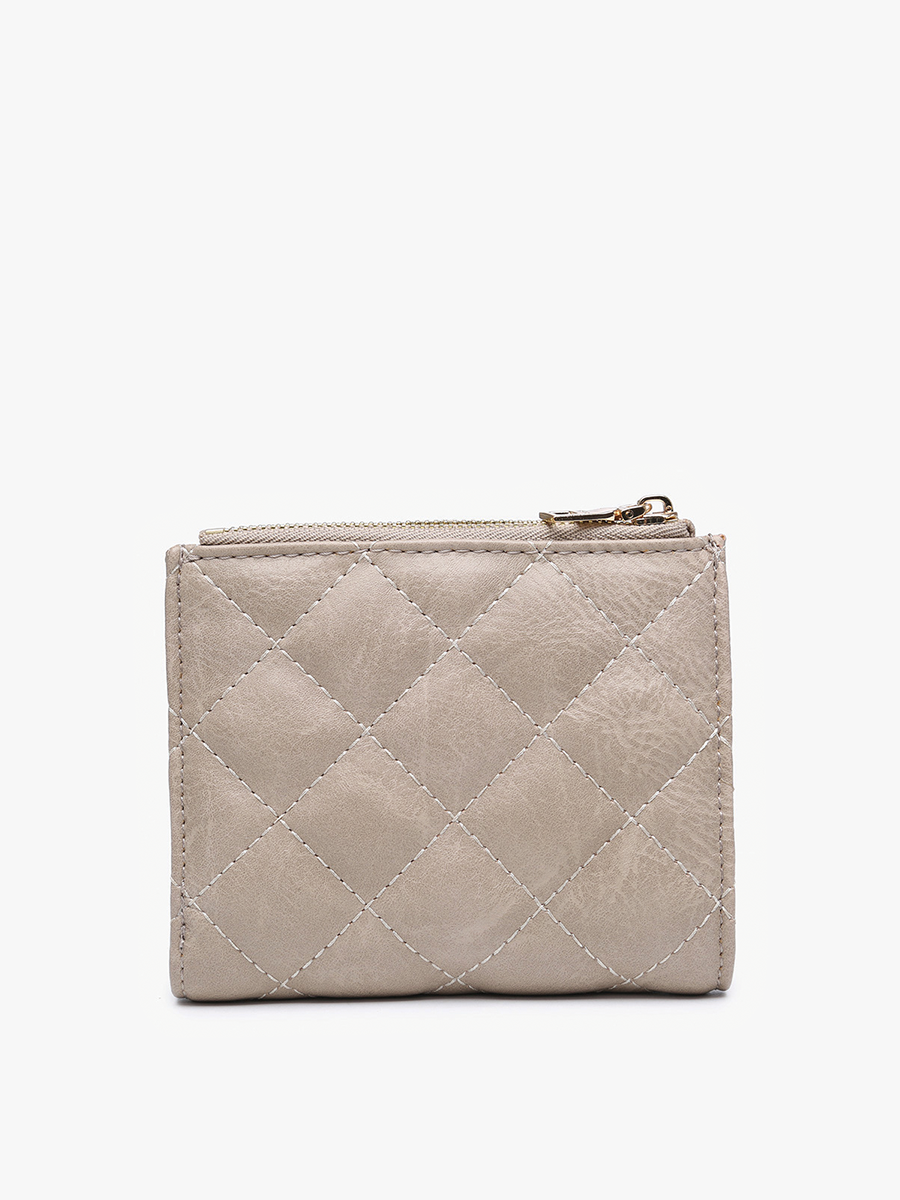 Meet Melody, the versatile fold-out style wallet that adds a touch of luxury to your favorite small bag! Crafted with a soft, quilted design, Melody is as stylish as it is functional. Inside, you'll find convenient card and ID slots, along with a zip change pocket for added organization. Melody snaps closed securely, ensuring your personal items stay safe wherever you go. Crafted from vegan leather, it's a sustainable and stylish choice for the environmentally conscious individual.
