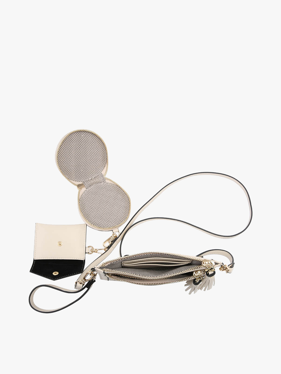 • Includes a wristlet strap and adjustable/detachable crossbody strap.