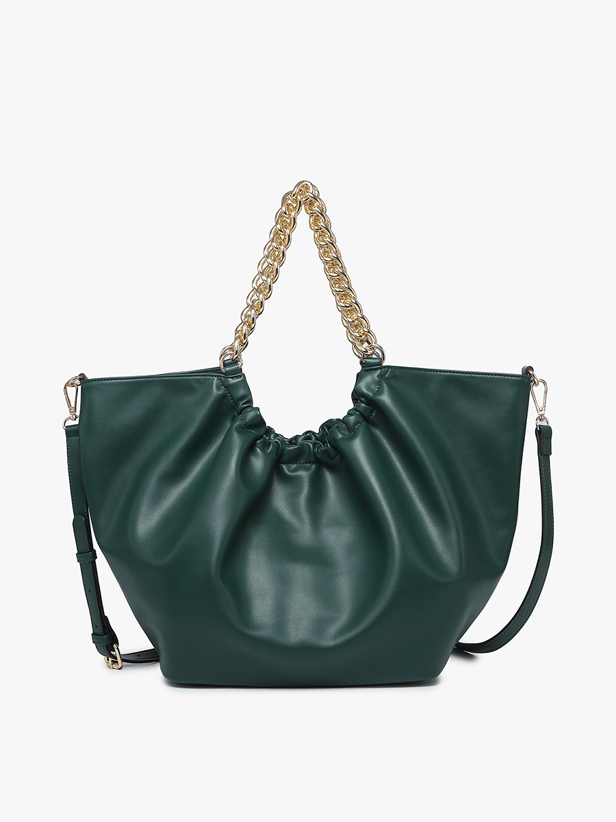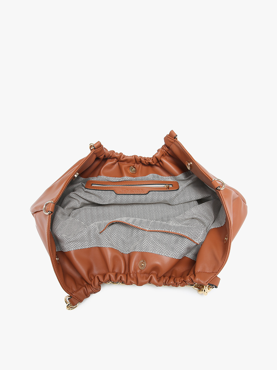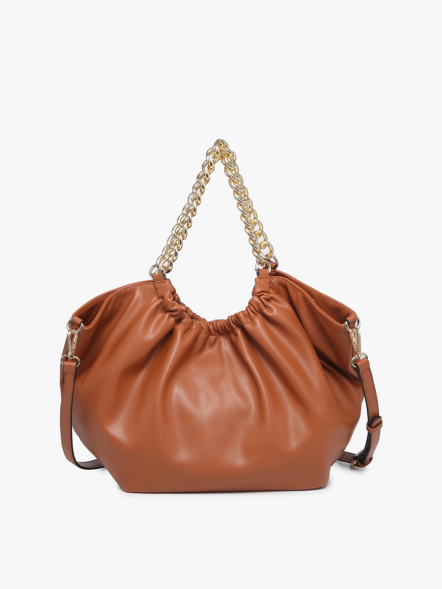 Embrace effortless style with Stassi, the epitome of laid-back sophistication. This large tote is designed for convenience with its snappy 3-point opening and elegant chain handles, exuding charm wherever you go. Need versatility for your cross-town adventures? Simply sling on the adjustable crossbody strap and strut in style with Stassi by your side. Inside, Stassi features a lined interior complete with slip and zip pockets, keeping your essentials organized and within reach.