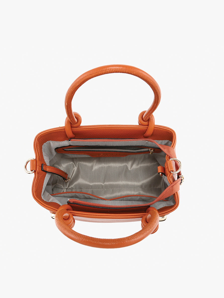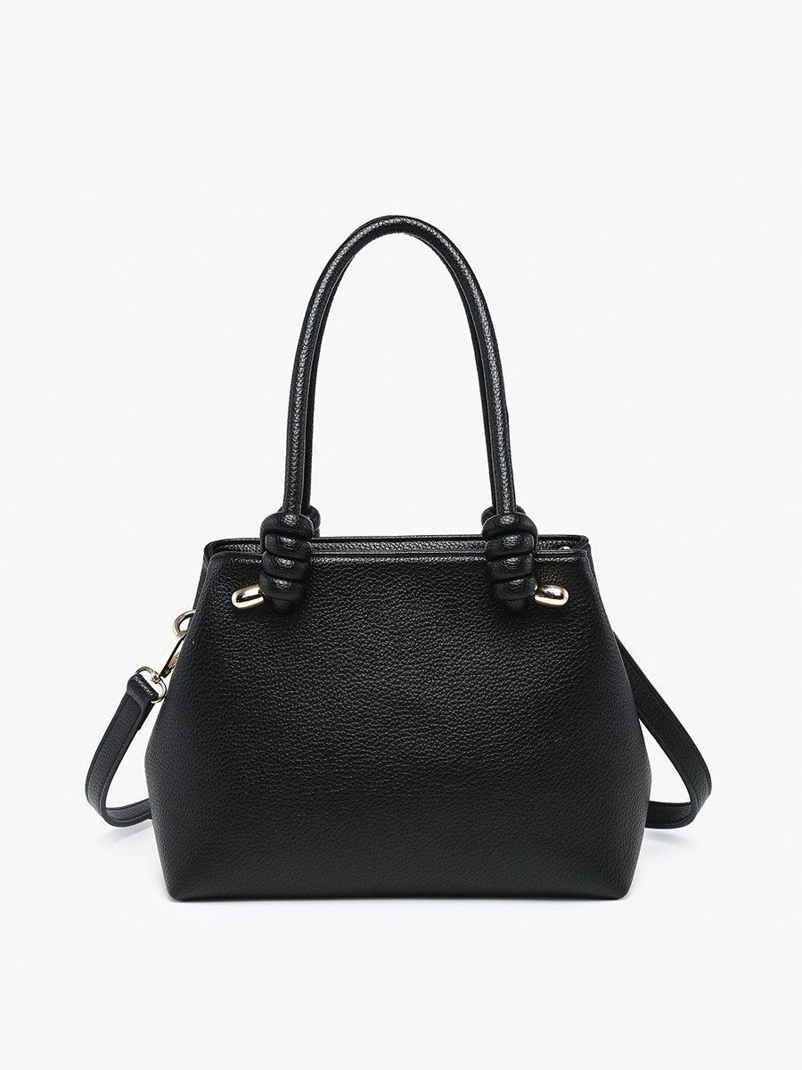 The Blair Classic Satchel is a timeless accessory made from premium vegan leather, featuring dual knotted handles for a sophisticated touch. With a top zip closure and additional top hook closure, this satchel ensures secure storage. It includes a back zip pocket for extra convenience, and the adjustable/removable crossbody strap offers versatile carrying options.