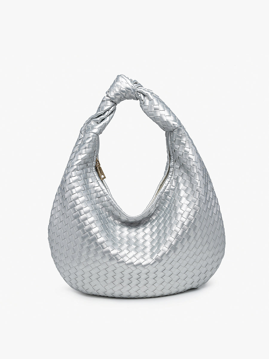 The Valentina Woven Hobo combines elegance with practicality, making it the perfect addition to elevate your fall wardrobe with a refined touch.