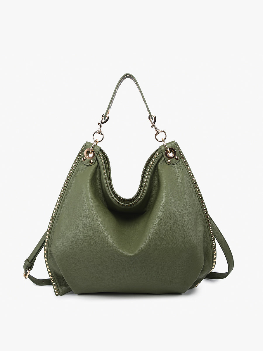 Elevate your everyday look with the Carly Studded Slouchy Hobo, the perfect blend of fashion and function.