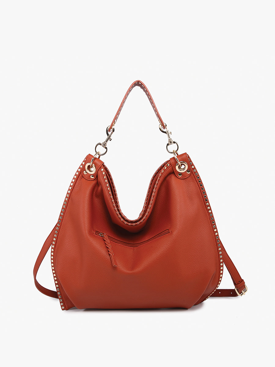 Elevate your everyday look with the Carly Studded Slouchy Hobo, the perfect blend of fashion and function.