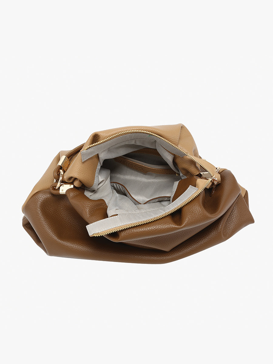 Make a statement with the Noelle Two-Tone Ruched Hobo—where chic design meets everyday practicality.