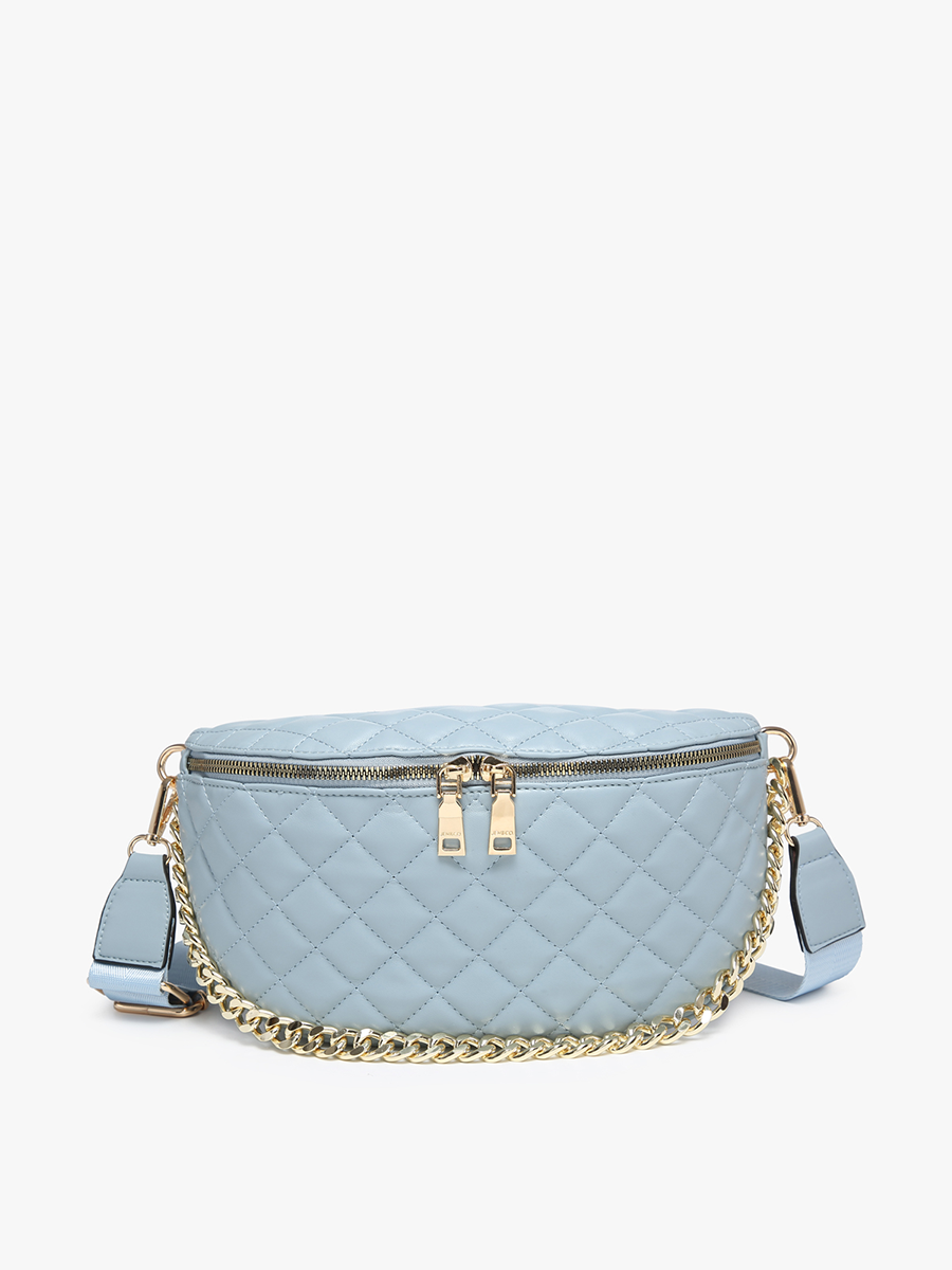 Meet Sylvie, the ultimate belt bag that combines functionality with undeniable style. Crafted to shine, Sylvie features a striking gold accent chain that adds a touch of sophistication to its quilted design. This versatile accessory is equipped with both inner and outer zip pockets, offering convenient storage for your essentials while on the go. The adjustable strap ensures a comfortable and customizable fit for any occasion. Made from premium vegan leather, Sylvie is not only fashionable but also eco-conscious. Elevate your accessory game with Sylvie and make a bold statement wherever you go.