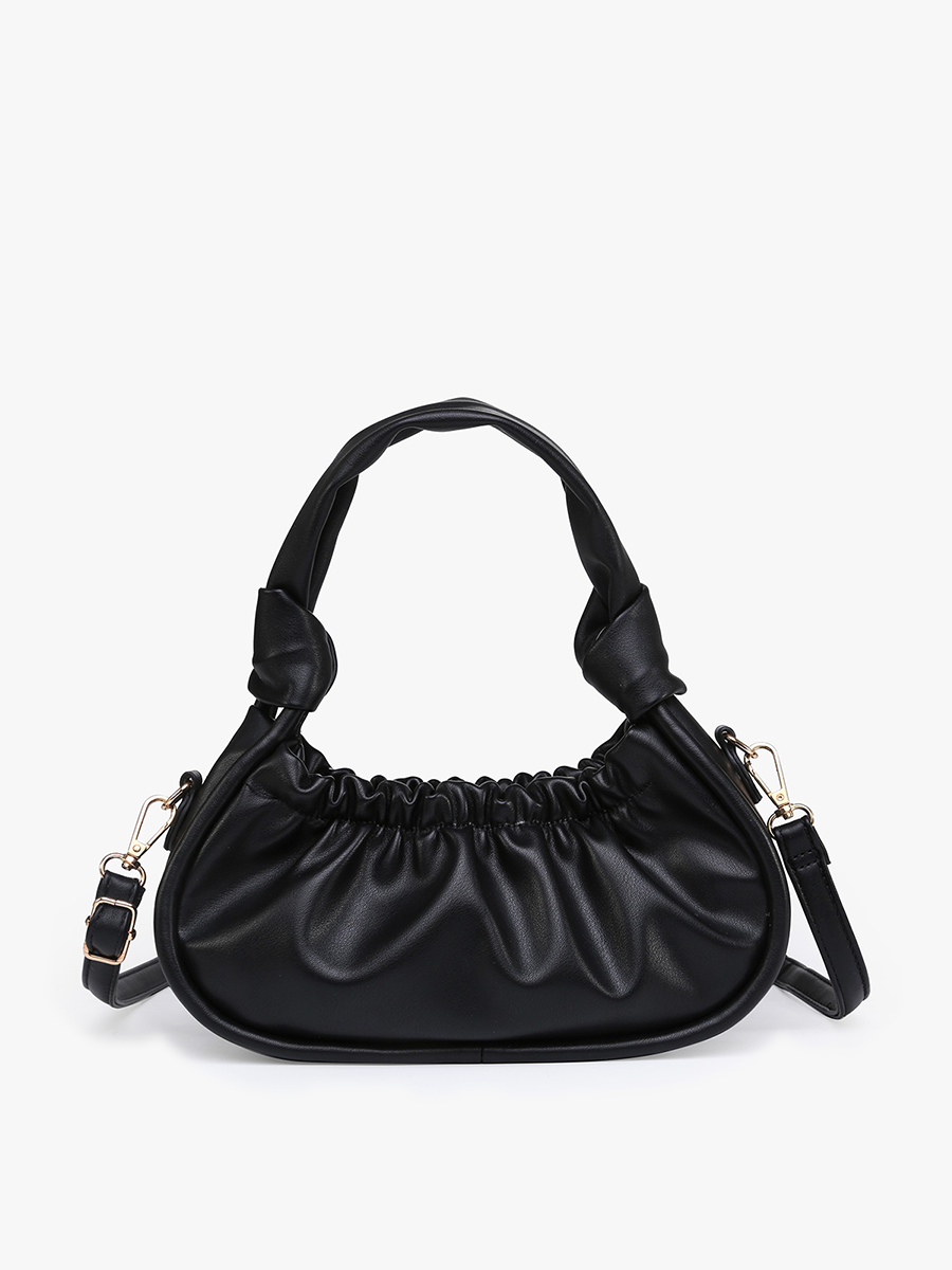 - Ruched detailing around snap closure: Enhances the bag's visual appeal.