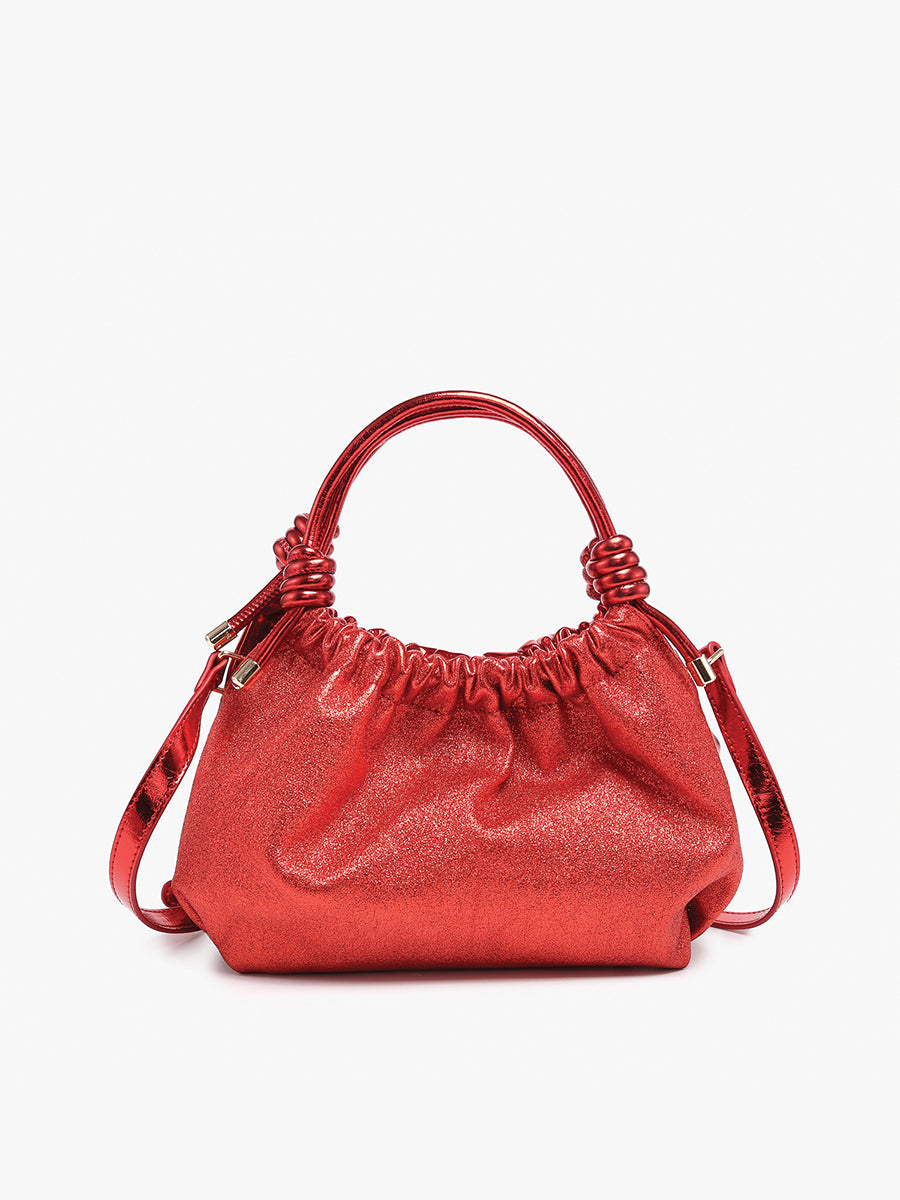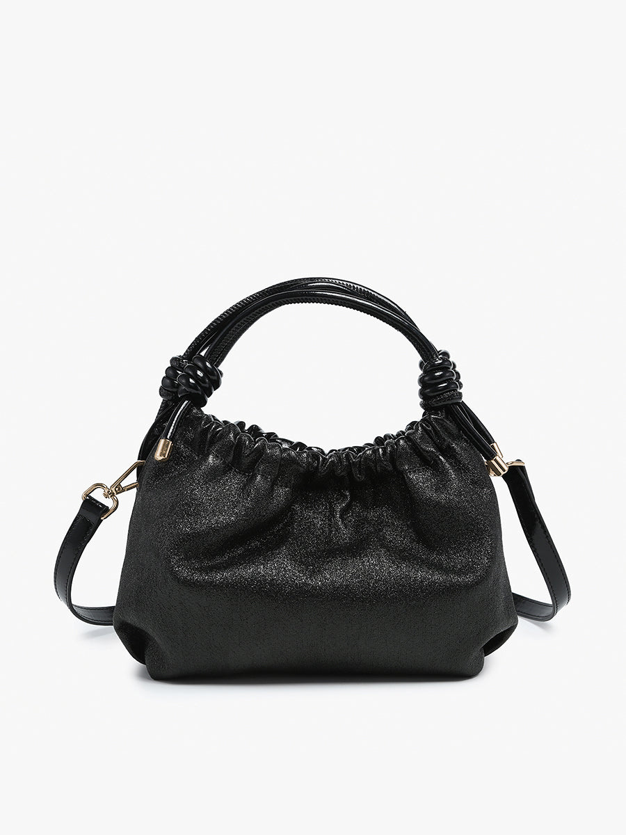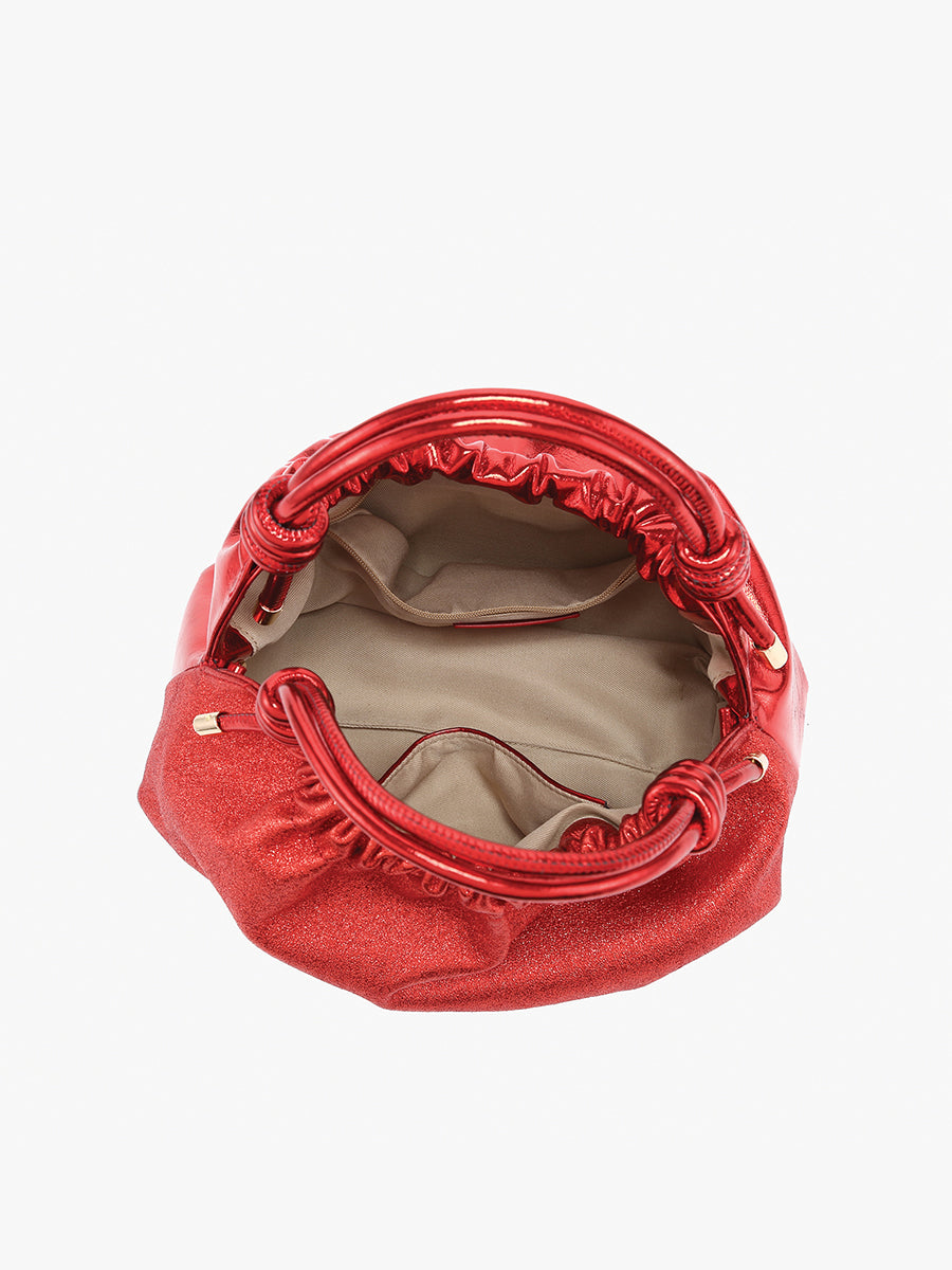 The Lennox Glitter & High Gloss Ruched Clutch Crossbody is a statement piece designed to elevate any outfit. With its glittery, high-gloss finish and ruched design, this clutch crossbody exudes elegance and flair. The knotted top handles add a stylish twist, while the adjustable/removable crossbody strap offers versatility.