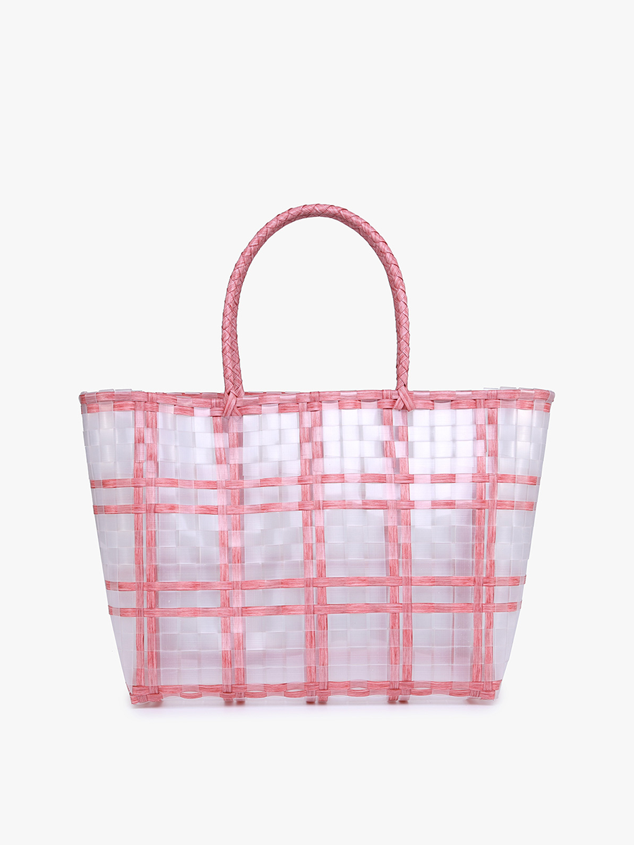 Introducing the Alexandria Plastic Tote, a versatile and eco-friendly accessory for your everyday needs. This tote features a durable plastic construction, perfect for carrying groceries, beach essentials, or gym gear. With its spacious interior and sturdy handles, it's the ideal choice for a sustainable and stylish lifestyle.