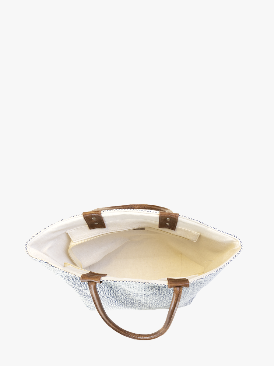 - Material: Straw with vegan leather accents