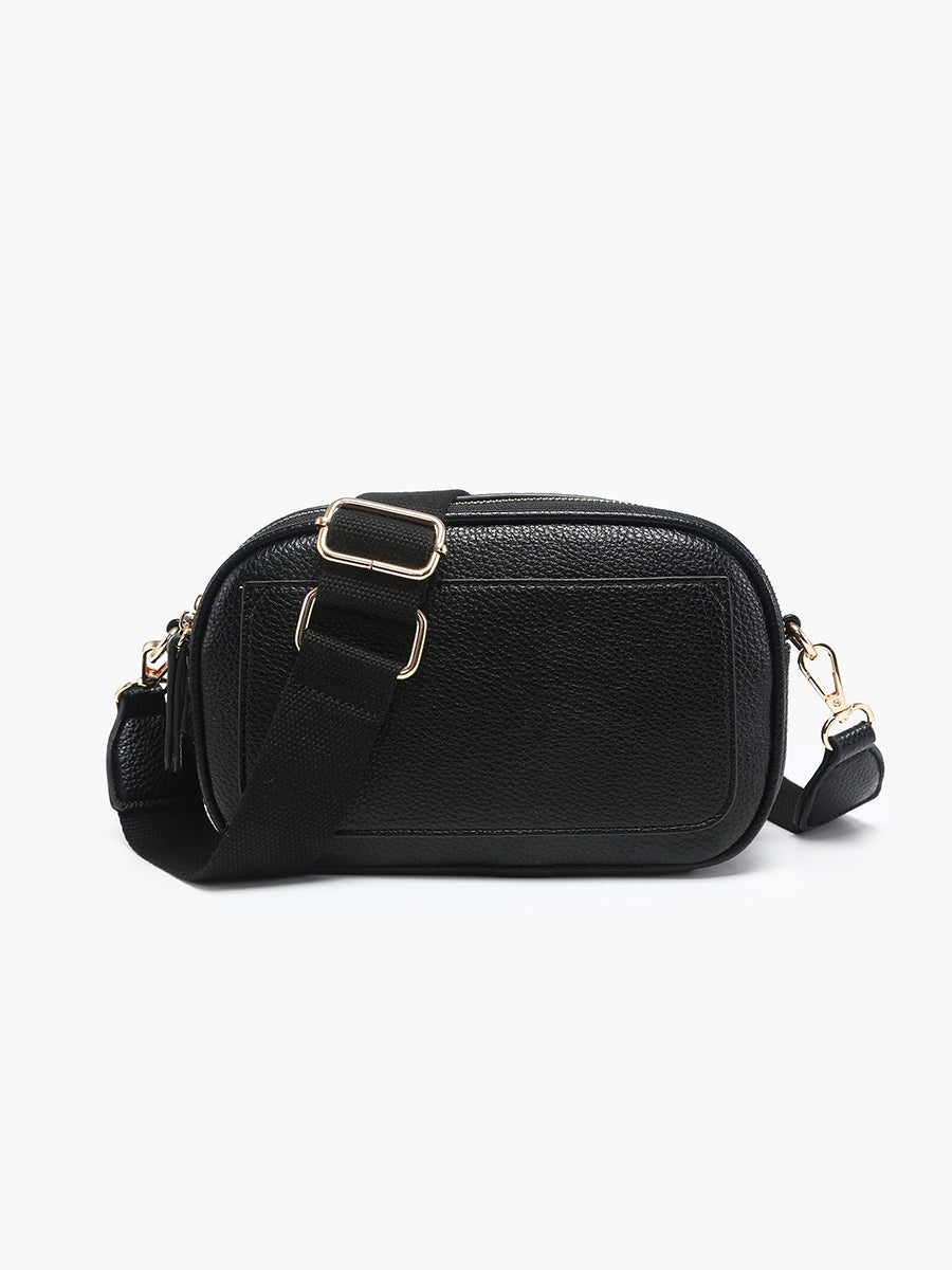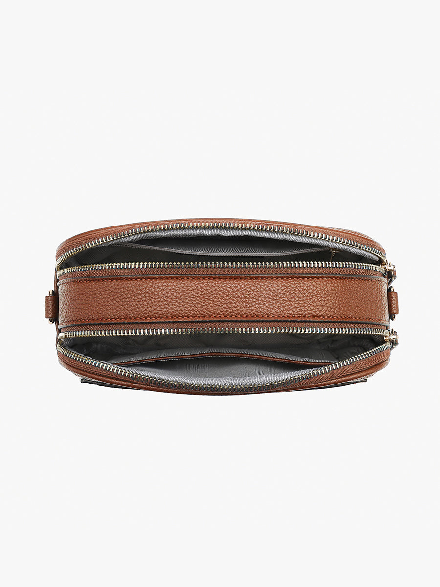 Featuring dual zip compartments for organized storage, a convenient slip pocket for essentials, and an adjustable, removable strap, this bag offers versatile, elevated functionality.