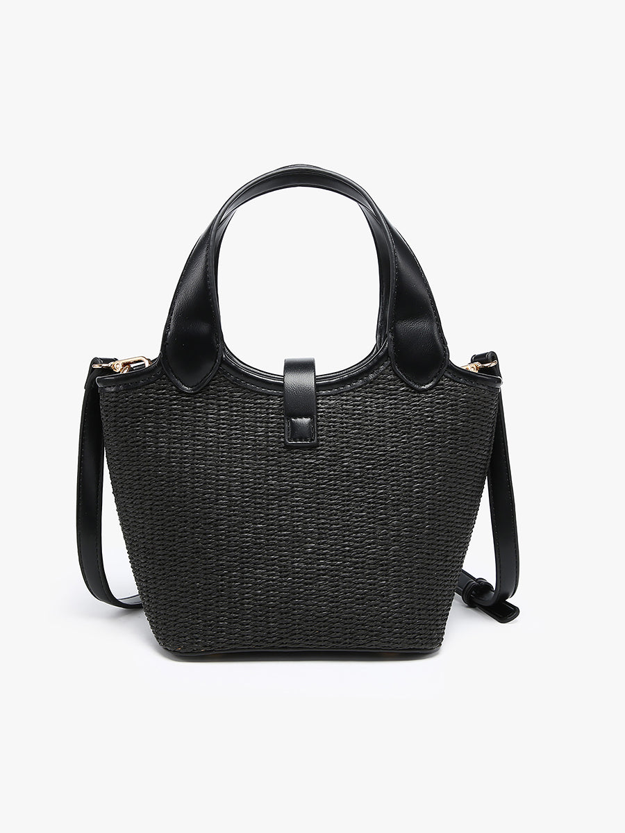 The Serenity Straw Bucket Bag brings a relaxed elegance to everyday style. Crafted in woven straw with subtle gold accents, it feels both natural and refined. The fold-over strap with gold loop detail and zip closure keeps essentials secure, while dual top handles and a removable crossbody strap offer easy versatility.