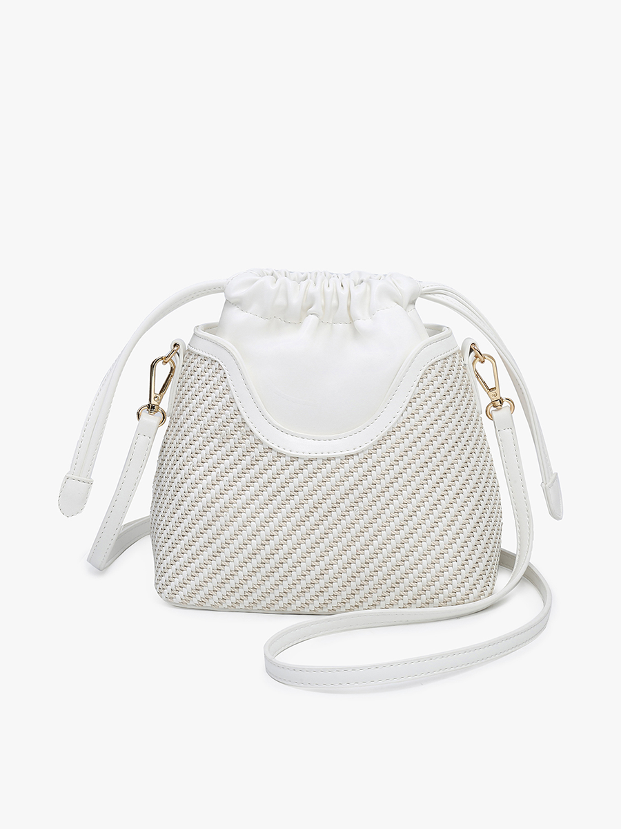 Embark on a whimsical adventure with the Juniper Woven Bucket Bag, a delightful accessory designed to elevate your style with ease. Crafted with intricate weaving, this woven wonder boasts a convenient drawstring closure, ensuring your belongings stay secure on your escapades. The adjustable crossbody strap offers hands-free carrying, while the inner slip and zip pockets keep you organized on the go. Made with a blend of vegan leather and woven material, the Juniper Woven Bucket Bag is not only stylish but also a conscious choice for the environmentally aware fashionista.