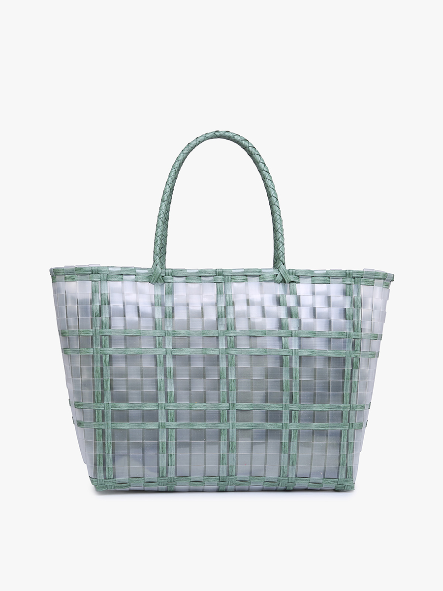 Introducing the Alexandria Plastic Tote, a versatile and eco-friendly accessory for your everyday needs. This tote features a durable plastic construction, perfect for carrying groceries, beach essentials, or gym gear. With its spacious interior and sturdy handles, it's the ideal choice for a sustainable and stylish lifestyle.