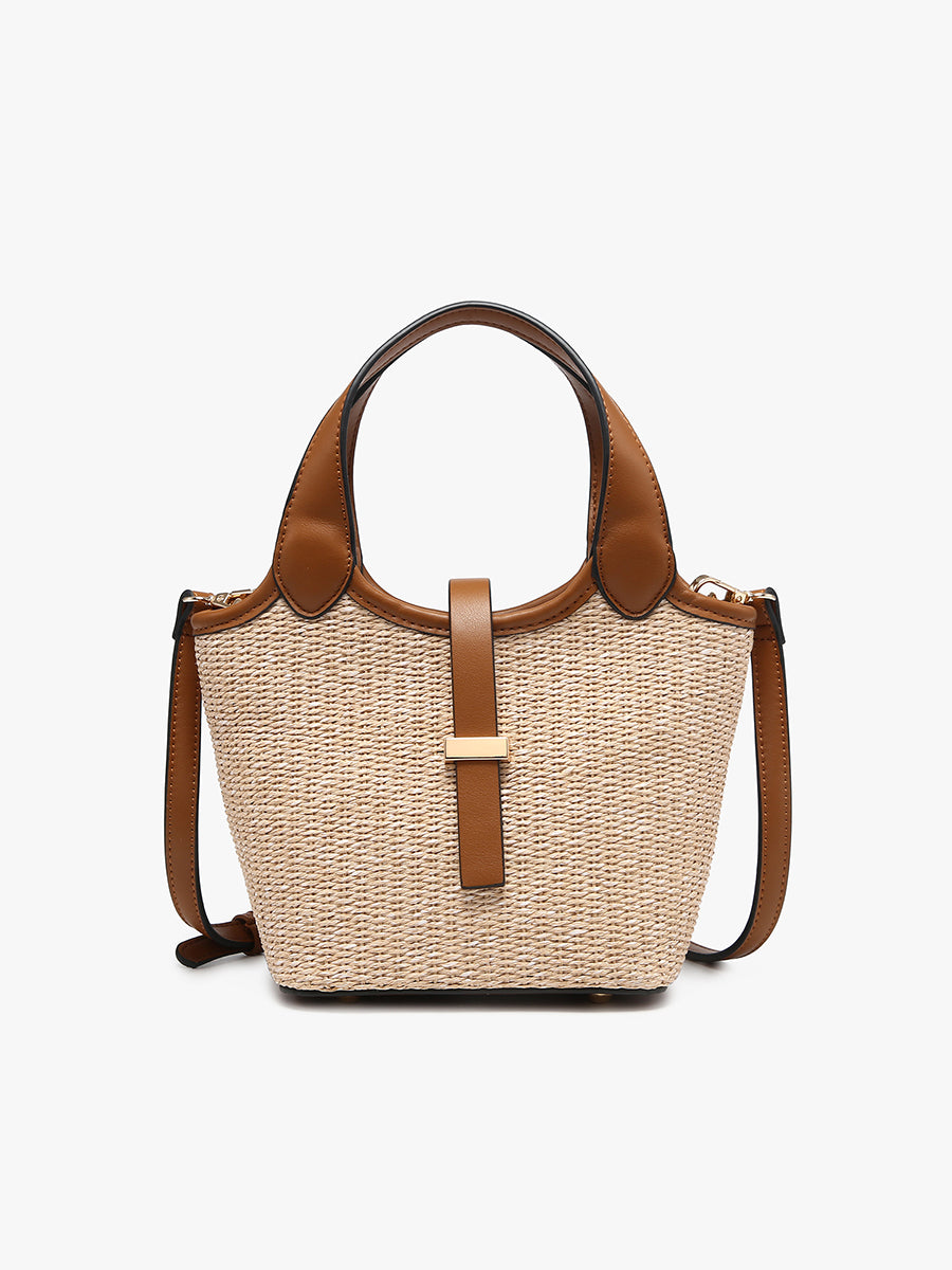 The Serenity Straw Bucket Bag brings a relaxed elegance to everyday style. Crafted in woven straw with subtle gold accents, it feels both natural and refined. The fold-over strap with gold loop detail and zip closure keeps essentials secure, while dual top handles and a removable crossbody strap offer easy versatility.