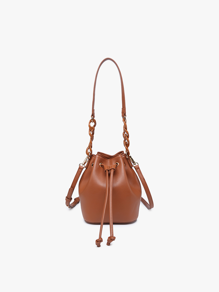 Meet Cordelia, the small but mighty bucket bag that effortlessly blends style and functionality. Securing your valuables with a convenient drawstring closure, Cordelia's interior is lined with slip and zip pockets, offering efficient organization on the go. This versatile bag includes a half-acrylic chain strap for a touch of sophistication and an adjustable/removable crossbody strap, providing multiple carrying options to suit your preference. Crafted from vegan leather, Cordelia reflects a commitment to sustainability and style.
