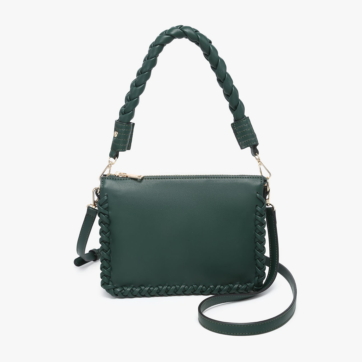 Prepare to elevate your style with the Judith Whipstitch Shoulder Bag! Boasting a playful braid detail on the trim and a removable handle/shoulder strap, this bag combines versatility with a touch of fun. With three compartments and a top zip closure, you'll have ample space to organize your essentials seamlessly. Additionally, the removable/adjustable strap enables you to customize your look effortlessly, adapting to any occasion or outfit.