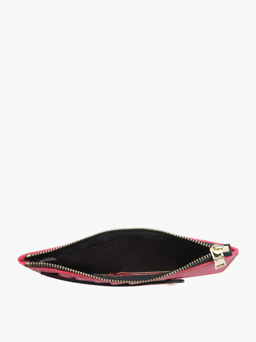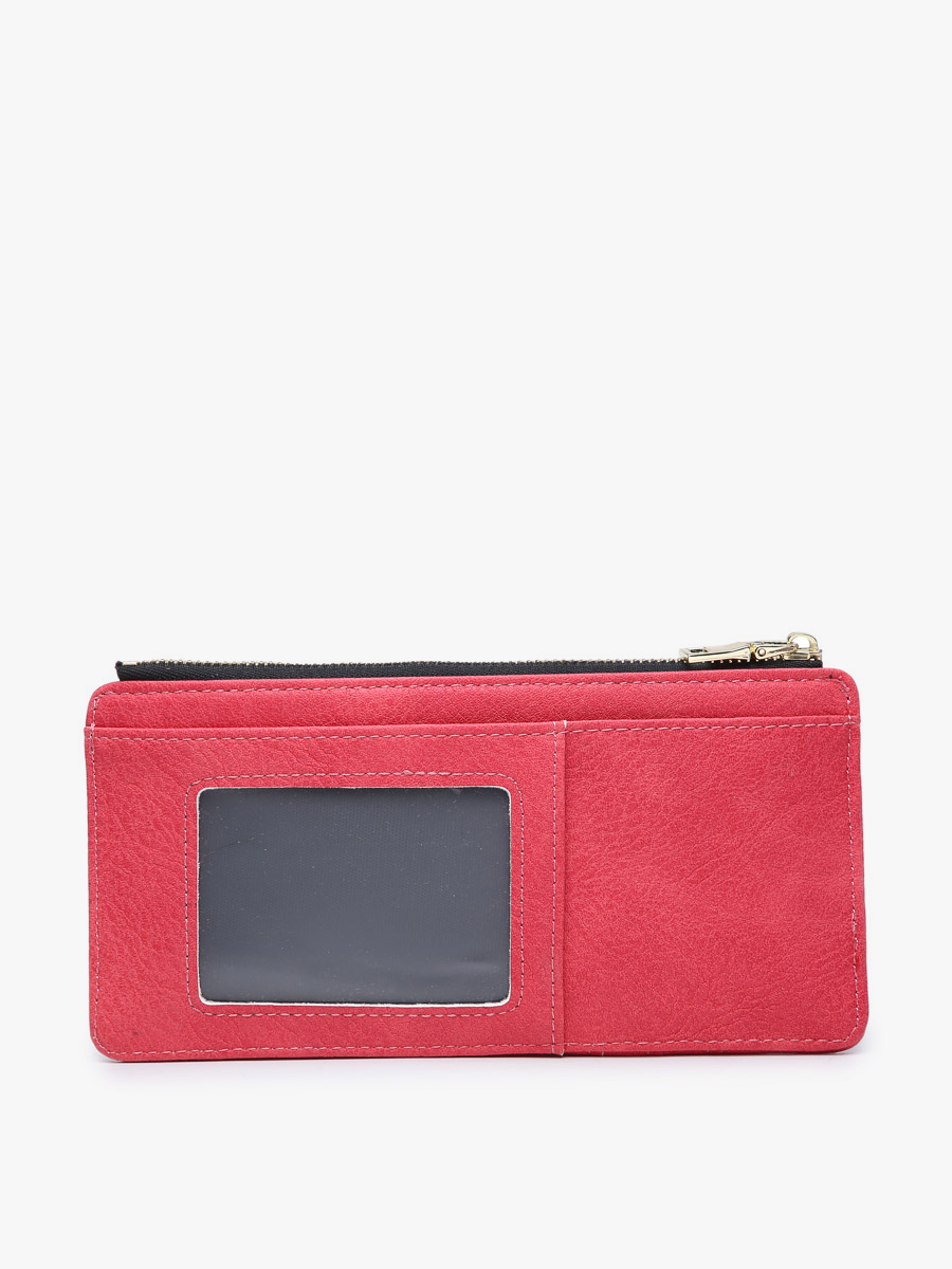 The Saige RFID Slim Card Holder Wallet combines sleek style with practical organization. Crafted from vegan leather with gold-tone hardware accents, it features a zippered coin pouch and ID holder, keeping essentials secure and easily accessible.